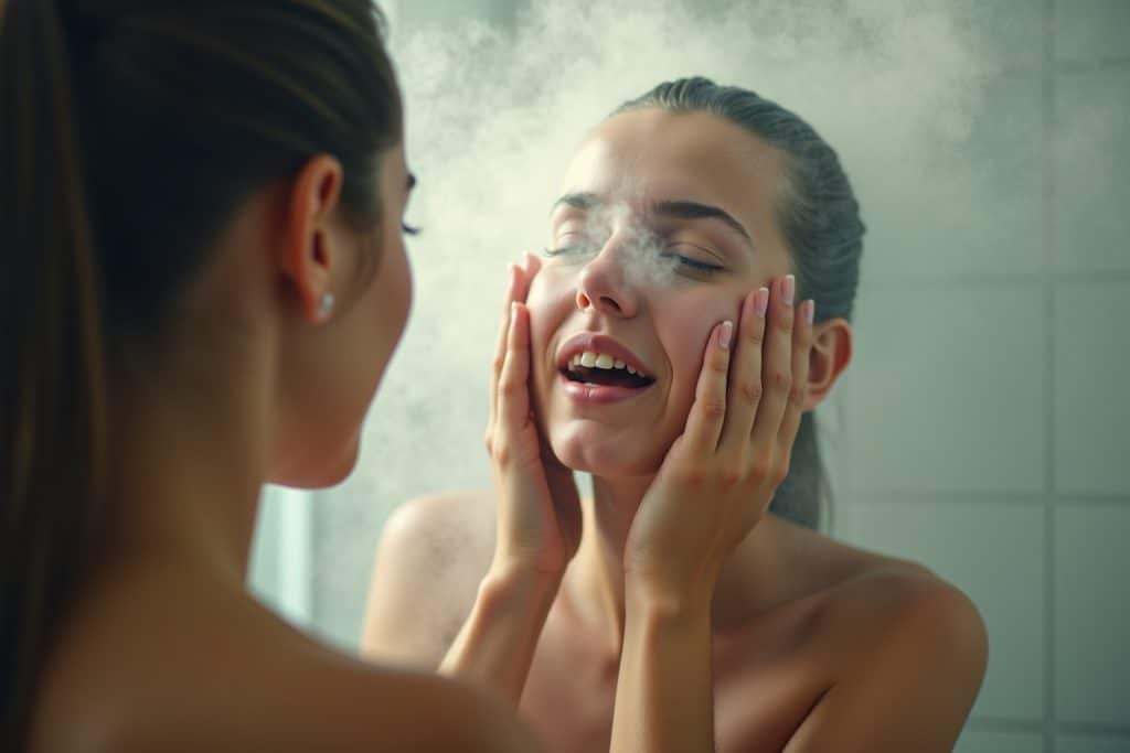 Um den Effekt des Dampfes noch zu verstärken, kannst du ein paar Tropfen ätherisches Öl, wie Eukalyptusöl oder Menthol, in die Dusche geben. Diese Öle wirken zusätzlich schleimlösend und entzündungshemmend. Achte aber darauf, die Öle nicht direkt auf die Haut aufzutragen, da sie Reizungen verursachen können. Ein paar Tropfen auf den Duschboden oder in eine kleine Schale genügen.