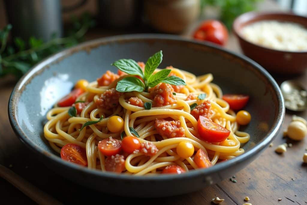Tipp: Experimentiere mit verschiedenen Gemüsesorten wie Zucchini, Paprika oder Champignons. Du kannst auch etwas Mozzarella oder Parmesan hinzufügen, um die Pasta noch cremiger zu machen.